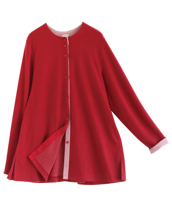 身体からの湿気を吸収してあたたかさに変える“呼吸する素材”、ソフトサーモ®α。繊維の間に生まれる空気の層がぬくもりを包みこみ、余分な水分を逃して、いつもサラリと快適。やわらかな肌ざわりと、ふっくらとしたぬくもりは、一度袖を通せば手放せない心地よさ。大切な方への贈りものにも、自分へのごほうびにもふさわしい、安心のあたたかさです。