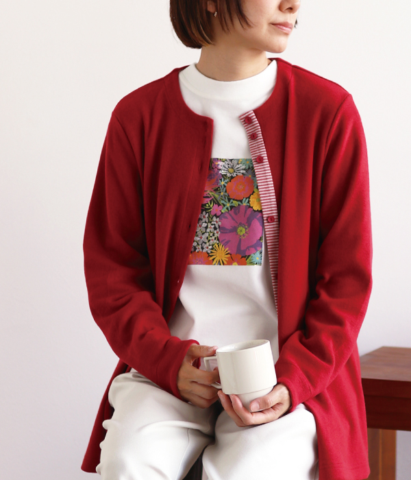 ソフトな着心地と程よい厚みで、ブラウスや薄手のインナーと重ねても。