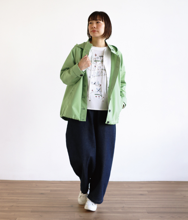 春のお散歩も安心。花粉が付きにくいアウター。