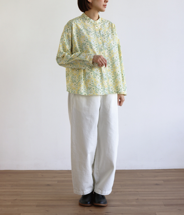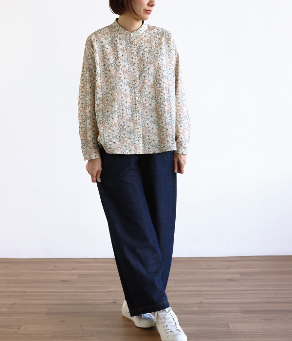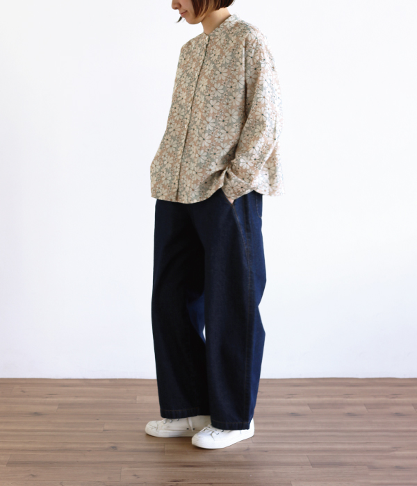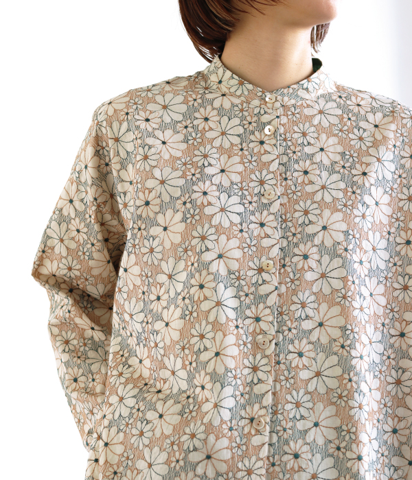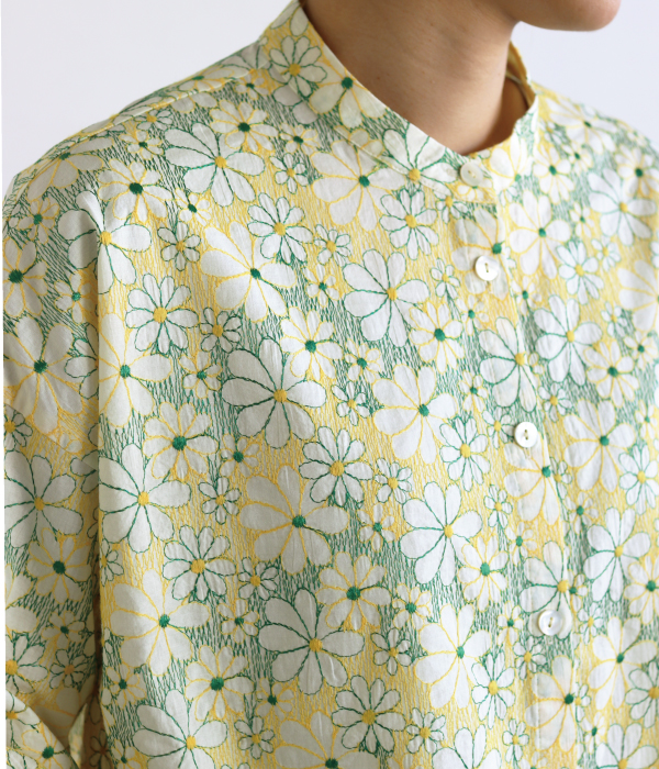 総刺繍のテキスタイルが、コーディネートの主役になるブラウスです。