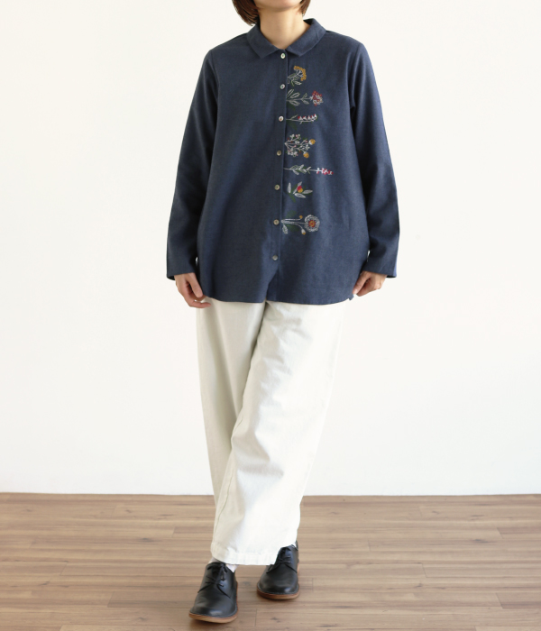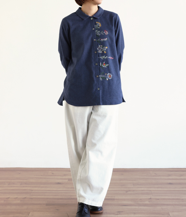 草花刺繍ブラウス