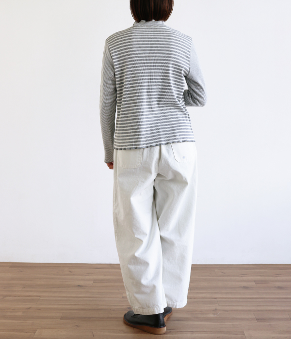 太さの異なるボーダーを切り替えた遊び心のあるデザイン。