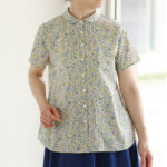 2枚仕立てのプルオーバー仕様で、内側はノースリーブで風通し良く、 外側は半袖で胸下あたりまでの丈。2枚を襟ぐりで縫い合わせています。
