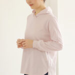 小さめの襟に、ヒップラインまでの合わせやすい着丈、 シンプルなデザインのブラウスです。