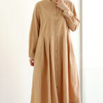 ポリウレタン混でストレッチ性もあり、らくちんな着心地です。前後縦に切り替えを入れて縦にスッキリと見え、後首繰りは襟腰を付け首元をカバー。ヨーク切り替えとタックを施したディテールで、後姿にもごだわりました。着やすくて合わせやすく、気になる部分もカバーできる丁度いいバランスの丈感に仕上げています。
