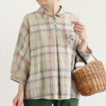 素材:【本体】麻100%(布帛) 前身頃サイド、袖、後ヨーク下【別布】麻100%(cut&sew) 前身頃中央、後ヨーク