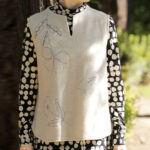 ネック部分にギャザーを施しふんわりシルエットに仕上げました。