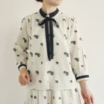 デザインはデコルテを美しく見せるダーツや、使い勝手の良いマチポケットがポイント。袖丈はスリット仕様で折り返しも可能。異なるサイズのボタンや配色ステッチ等、シンプルながらも遊び心のあるジャケットです。